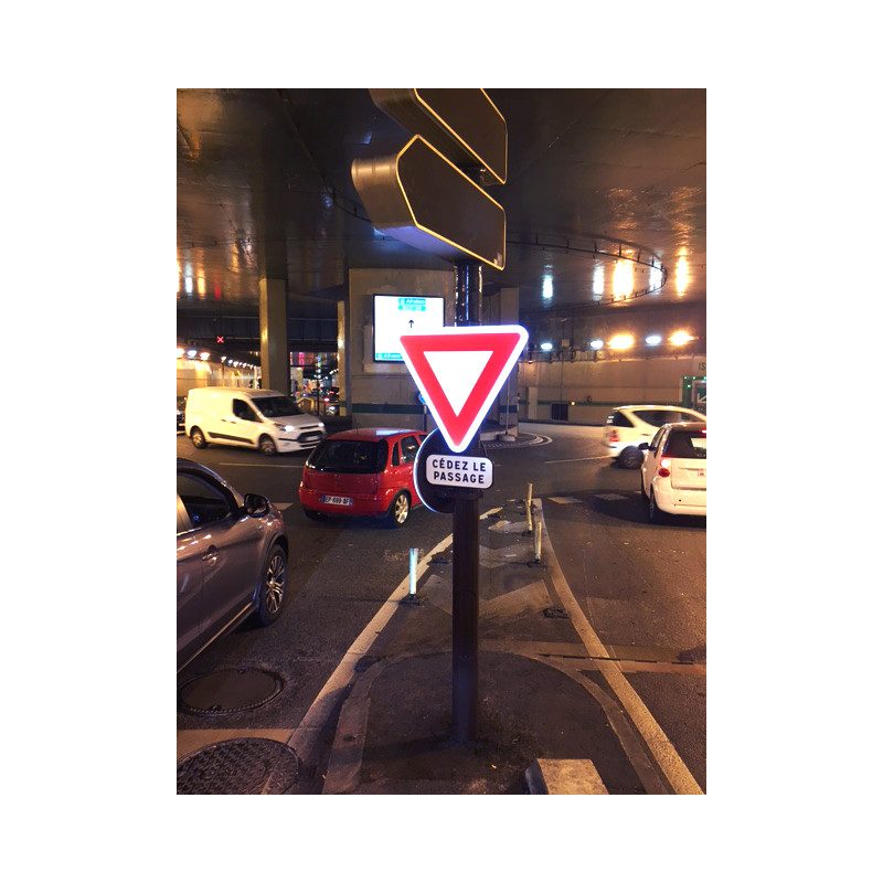 Le AB3A est implanté sur la route pour indiquer qu’il faut « Cédez le passage à l’intersection »