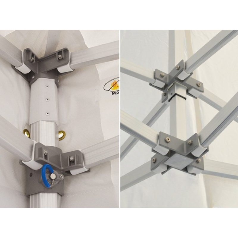 Aucun outil n’est nécessaire lors du montage/démontage de la Tente Pliante qui se fait en moins d’une minute, le blocage et déblocage de l’armature est assuré par goupilles.