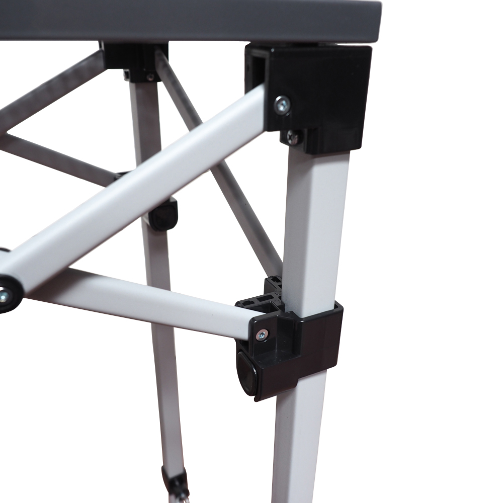 Ce comptoir pliant se range et se transporte facilement grâce à ses 2 sacs de transport inclus (un sac pour la structure, 1 sac pour les plateaux)