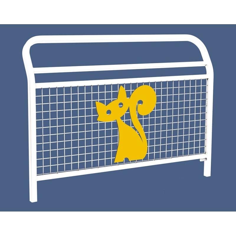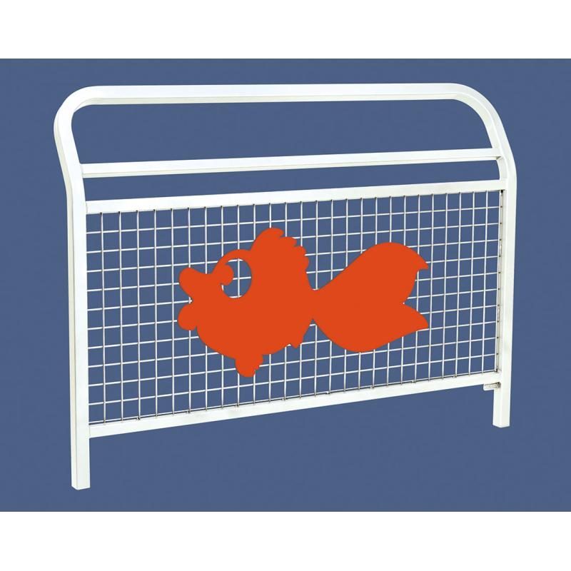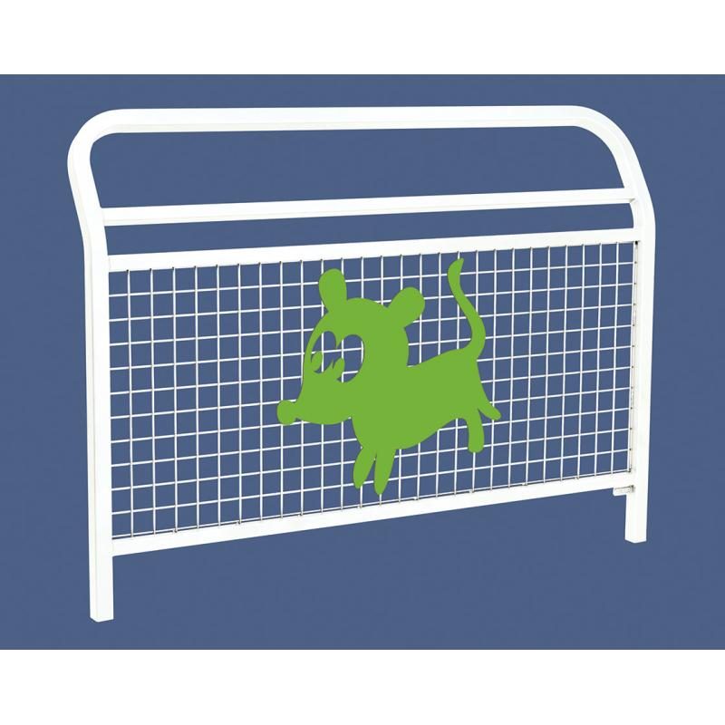 Cette barrière de ville Conviviale® grillagée est munie d’une lisse haute supplémentaire très sécuritaire et a été conçue pour recevoir des animations spécialement destinées aux enfants