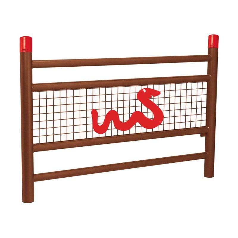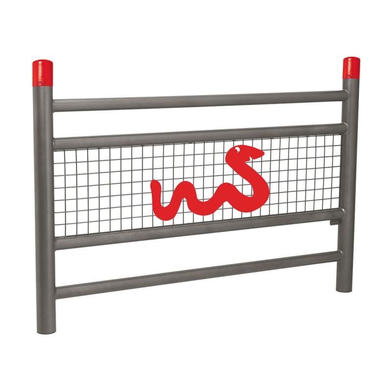 structure acier peint sur zinc selon nos coloris. Animation « Dino » en RAL 1021, animation « Serpent » en RAL 3020, animation « Croco » en RAL 6018 (les couleurs des pommeaux et de l’animation sont identiques)