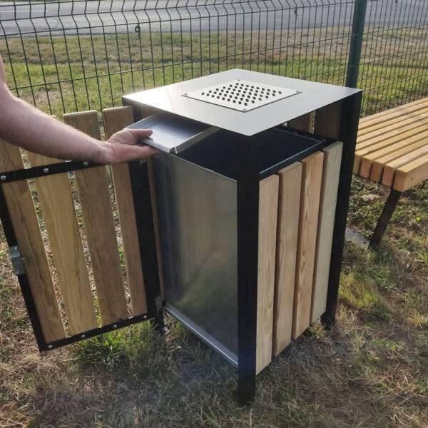 Le dessus de la poubelle est équipée d’un cendrier