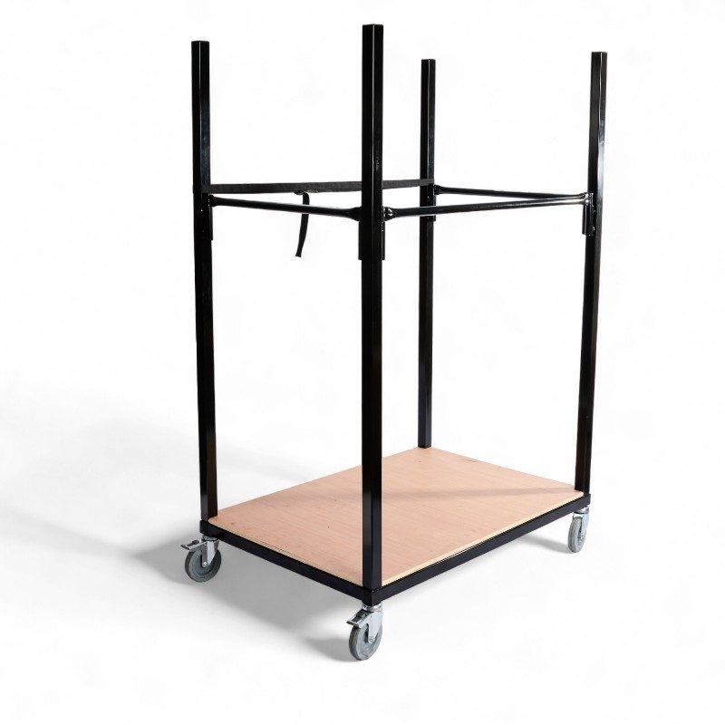 Le chariot pour barnums, avec sa finition en peinture thermolaquée RAL 9005 et son plancher en bois robuste, est l’outil indispensable pour toute organisation nécessitant un transport efficace et sécurisé de barnums. Simplifiez la logistique de vos événements avec ce chariot robuste, maniable et esthétiquement plaisant