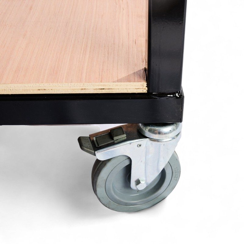 Nos chariots sont conçus pour une utilisation sur surface plane et dure, sans irrégularité ni écart de niveau (type sol lisse ou béton). L’usage sur graviers, seuils ou revêtements non adaptés peut entraîner une détérioration prématurée des roulettes