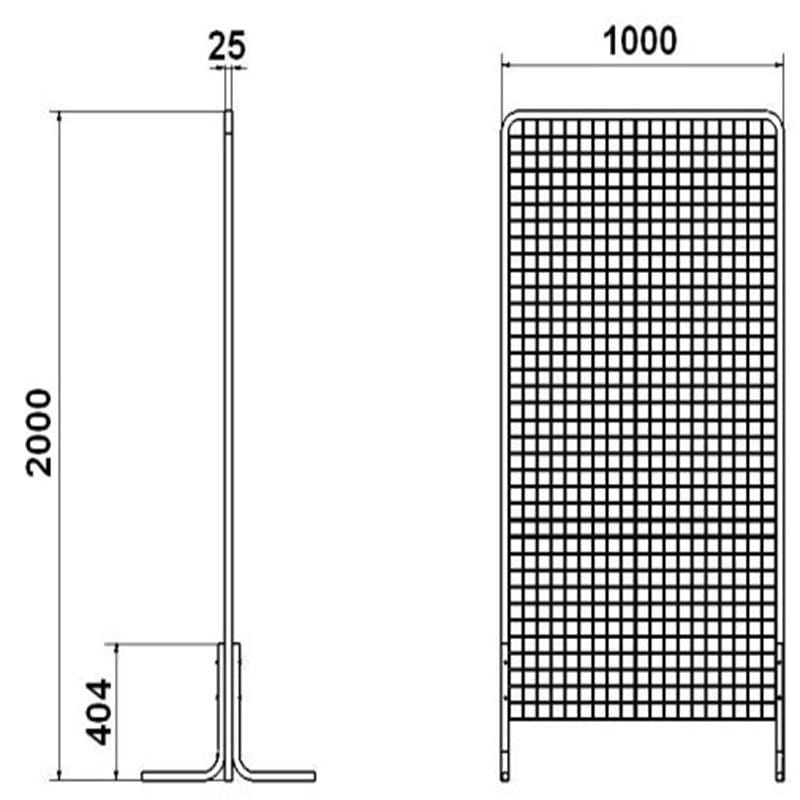Grille d’exposition 2 x 1 m, équipée de doubles pieds pour une stabilité renforcée