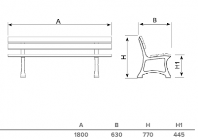 Banc avec piètement en fonte ductile avec traitement Ferrus, procédé qui protège le fer et garantit une résistance optimale à la corrosion
