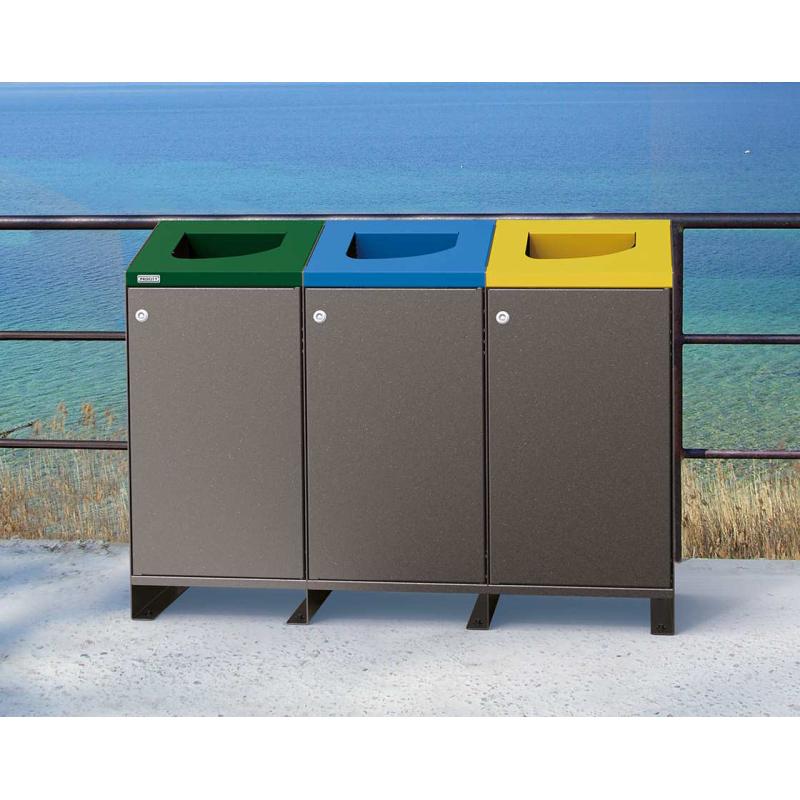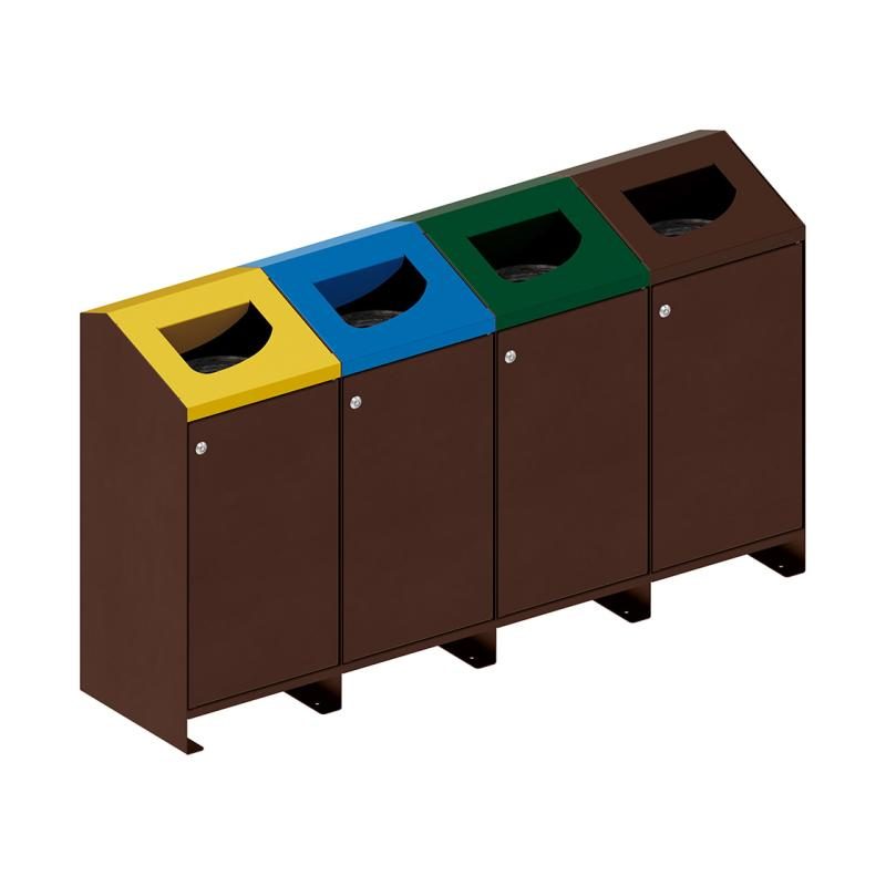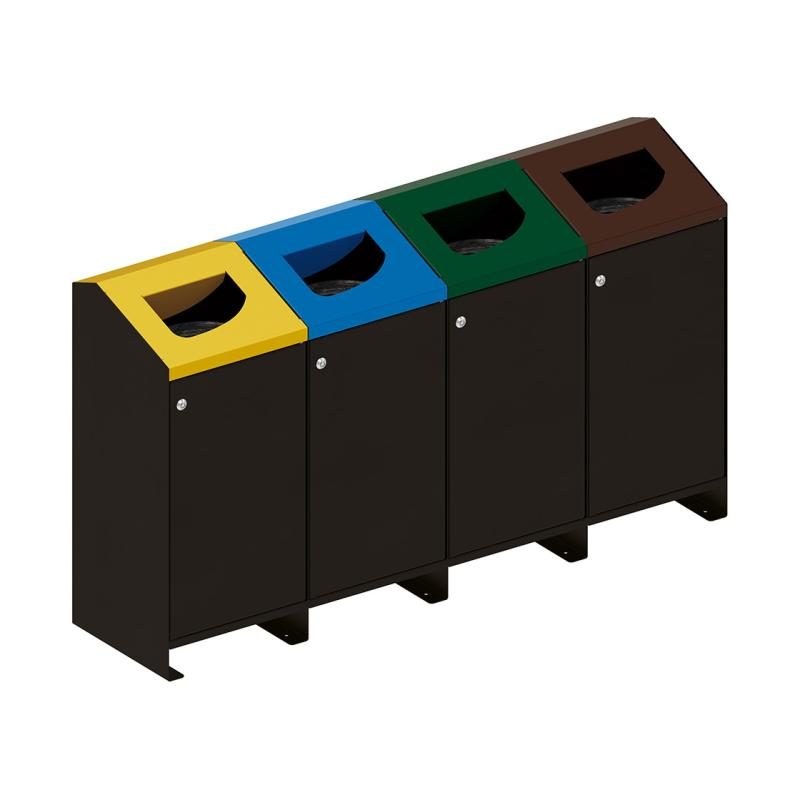 Proposez des zones de tri en installant, en fonction des besoins, 2 à 4 modules de la corbeille tri sélectif Berlin.