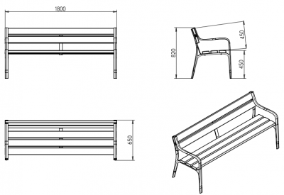 Siège et dossier en ReBnew, banquette avec accoudoirs en polymère injecté sous haute pression. Finition teinte marson. Sans entretien, éclats ni fissures, ne pourrit pas. Résistant à l’humidité, intempéries et tout type d’agents chimiques.